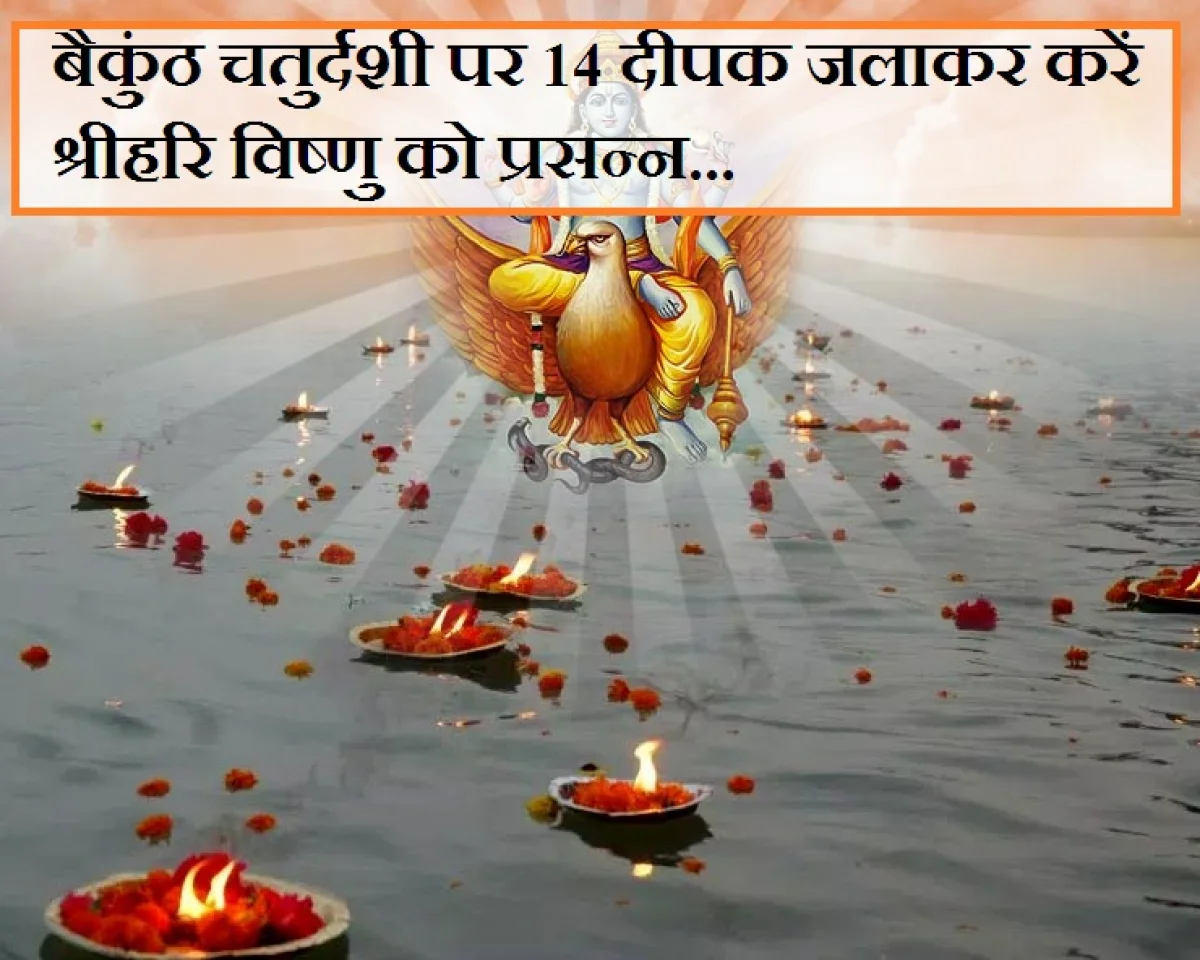 धार्मिक शास्त्रों के अनुसार बैकुंठ चतुर्दशी के दिन व्रत-उपवास करके नदी, सरोवर आदि के तट पर 14 दीपक जलाने की परंपरा है।