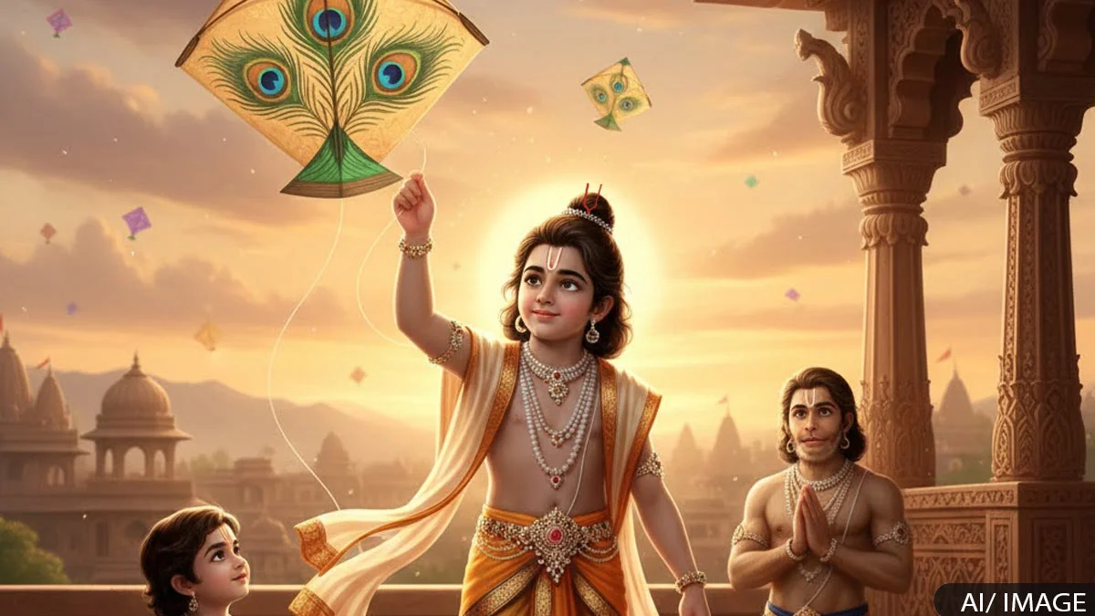 मकर संक्रांति के दिन प्रभु श्री राम ने पहली बार पतंग उड़ाई थी। वह पतंग उड़ते हुए इंद्रलोक तक जा पहुँची थी। इंद्र के पुत्र जयंत की पत्नी ने उस सुंदर पतंग को पकड़ लिया और सोचा कि इसे उड़ाने वाला कितना सुंदर होगा।