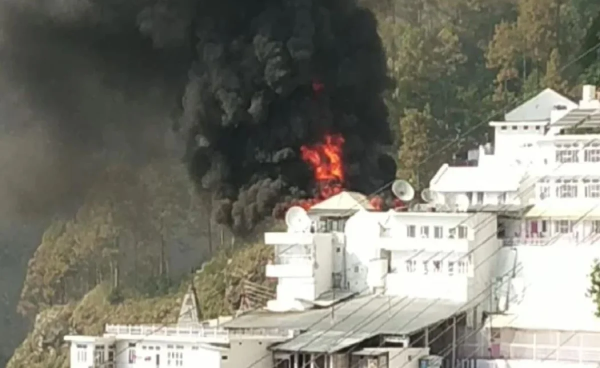 कटड़ा स्थित माता वैष्णो देवी के दरबार में आग लग गई है। आग पर काबू पाने के लिए बड़े पैमाने पर बचाव कार्य चल रहा है। जहां आग लगी है उस स्थान से प्राकृतिक गुफा की दूरी तकरीबन सौ मीटर है। आग की लपटें भैरो घाटी तक दिख रही हैं।