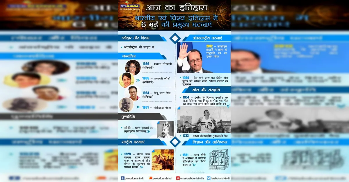 आज का इतिहास : भारतीय एवं विश्व इतिहास में 6 मई की प्रमुख घटनाएं
